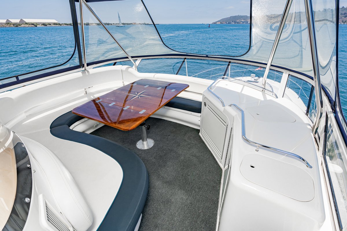 Custom-built as a charter yacht, she has a beautiful teak wood main salon, flat-screen TV with satellite service, spacious outdoor decks, and covered aft cockpit. Her beautiful teak interior and spacious outdoor decks are sure to impress. At 60 feet in length and 32 feet wide and has more deck space than most 100 foot yachts. Her wide beam also makes her very stable and comfortable while at sea. In addition to nearly 2,000 square feet of sail area, she also has twin 200HP turbo engines. So, whether under sail or under power, our yacht charter San Diego is faster than most power yachts her size.
