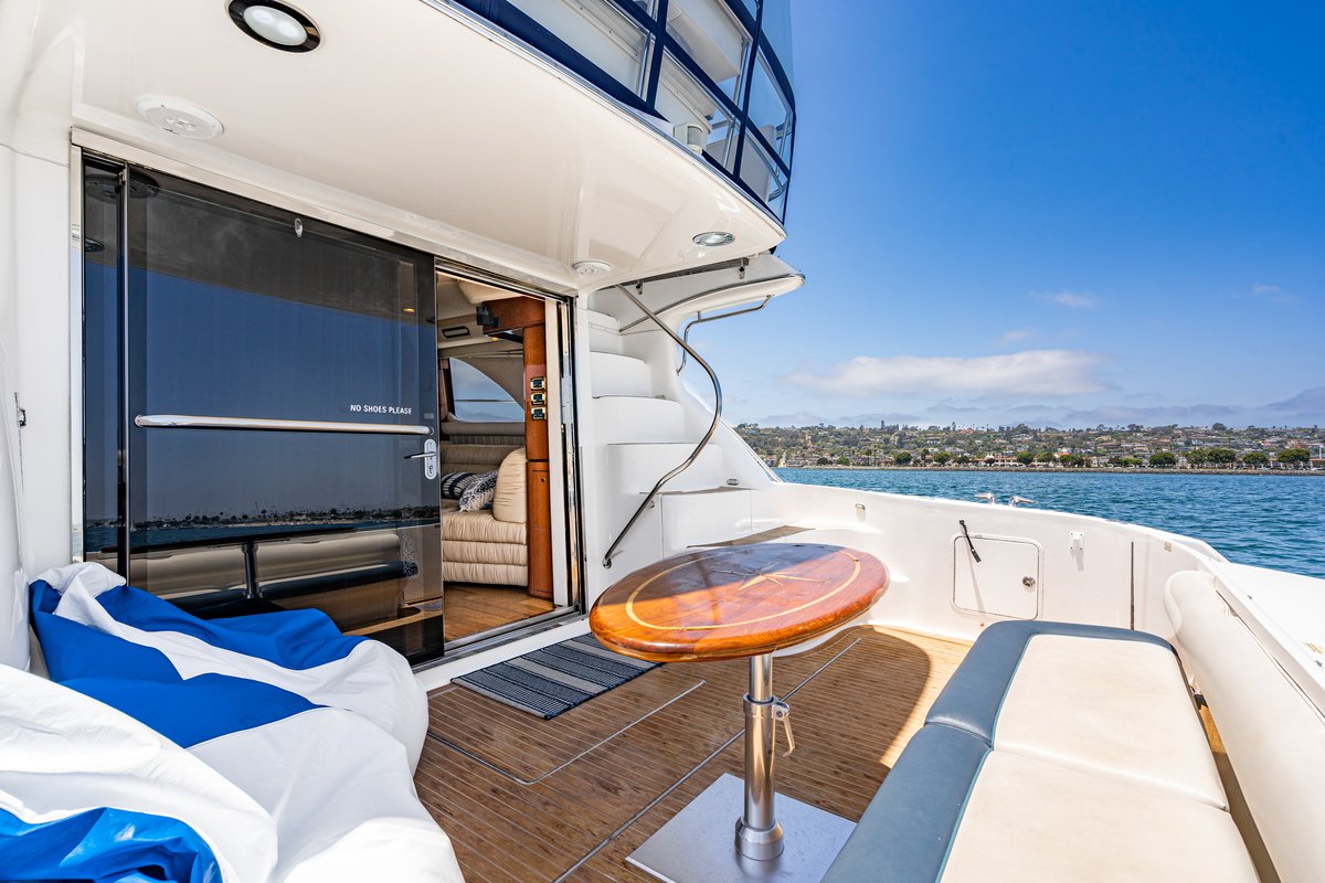 Custom-built as a charter yacht, she has a beautiful teak wood main salon, flat-screen TV with satellite service, spacious outdoor decks, and covered aft cockpit. Her beautiful teak interior and spacious outdoor decks are sure to impress. At 60 feet in length and 32 feet wide and has more deck space than most 100 foot yachts. Her wide beam also makes her very stable and comfortable while at sea. In addition to nearly 2,000 square feet of sail area, she also has twin 200HP turbo engines. So, whether under sail or under power, our yacht charter San Diego is faster than most power yachts her size.
